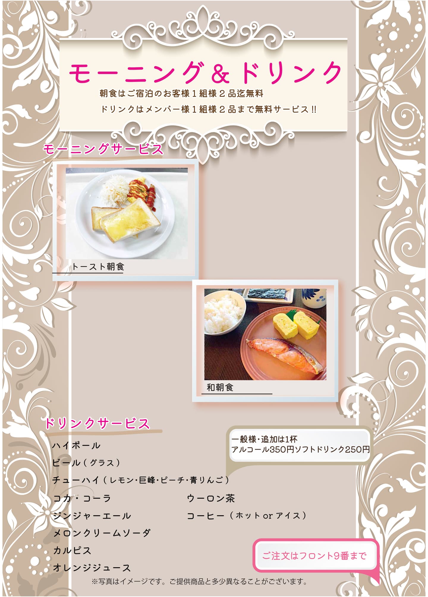 ご注文の際はフロント迄ご連絡お願い致します。